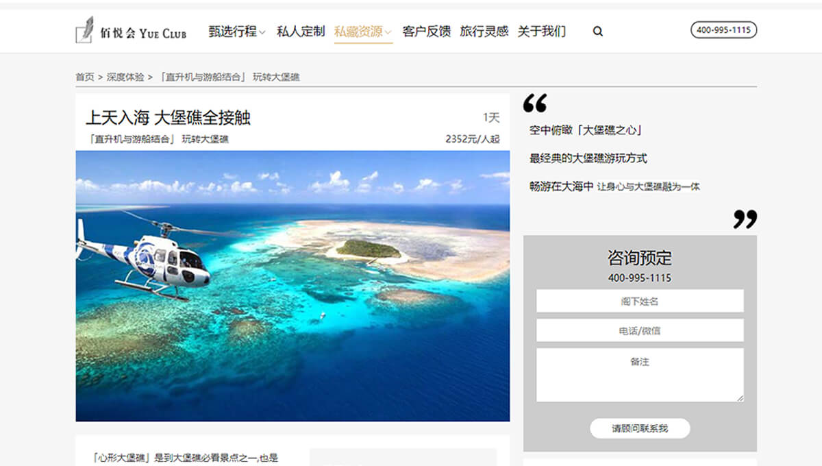 最早的專業(yè)高端定制旅行機(jī)構(gòu)之一。為中國奧迪車友俱樂部,GUCCI古馳中國,碧桂園高端業(yè)主指定旅行服務(wù)提供商