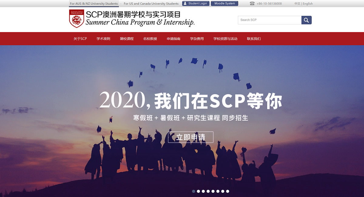 SCP國際暑期學(xué)校于2010年開始籌備,2011年正式成立,并于2012年在上海外國語大學(xué)及北京科技大學(xué)(現(xiàn)移至中國傳媒大學(xué))成功舉辦首屆項(xiàng)目,當(dāng)年即招收近600名來自美國、加拿大及港澳臺地區(qū)的學(xué)生。同年,SCP經(jīng)過嚴(yán)格審查,獲得教育部學(xué)位辦批準(zhǔn)。學(xué)生可通過教育部學(xué)位與研究生教育發(fā)展中心(CDGDC)獲得認(rèn)證成績單。