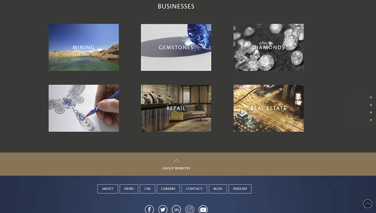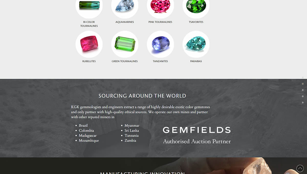 KGK與眾不同的地方KGK集團一直堅持自我開采,設計及生產旗下品牌全部珠寶,正是這點讓我們與其他同類公司與眾不同。同時,我們也為De Beers、Alrosa 和 Rio Tinto開採、打磨珍貴的寶石及半寶石。